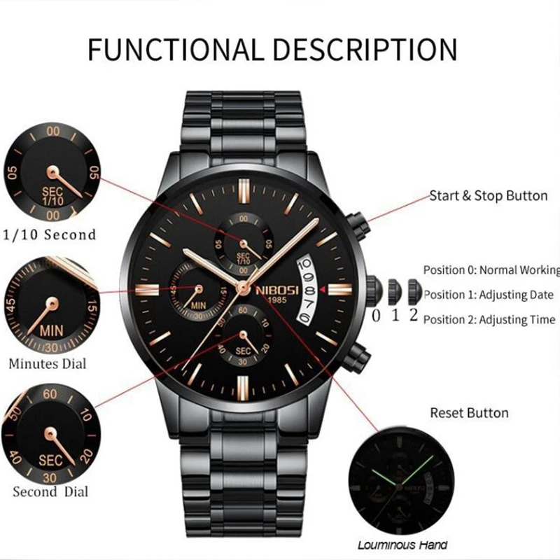 NIBOSI Relogio Masculino hommes montres haut de gamme de luxe célèbre hommes montre de mode décontracté chronographe militaire Quartz montre-bracelet
