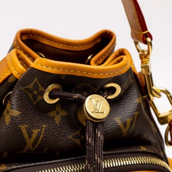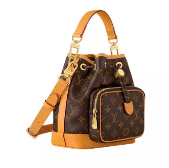 The Noé Cargo in Monogram canvas with aged-leather trim draws its essence from the original Louis Vuitton Noé bucket bag, created in 1932 to carry champagne bottles. With its spacious front pocket and meticulously crafted details, it pays homage to the House’s storied past while embracing contemporary needs. A top handle and shoulder strap – both removable – give carry options.