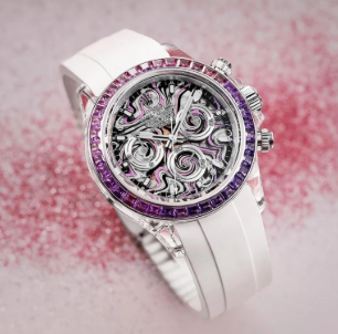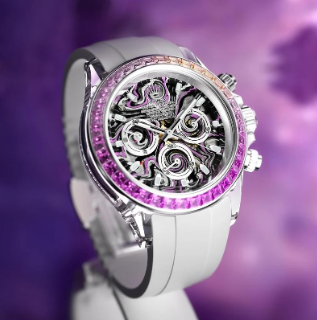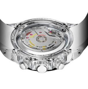 The automatic movement is powered by the Calibre 4130. The sapphire crystal case not only provides crystal-clear transparency to showcase the brilliance of the gemstones but also exhibits exceptional hardness and wear resistance. The watch is secured to the wrist by a Fluororubber bracelet with a fold clasp.