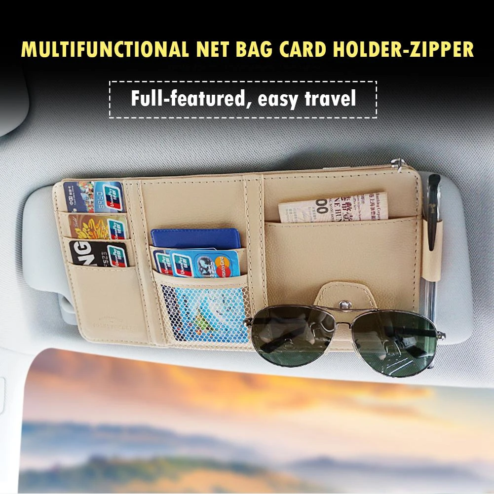 Sac de rangement pour pare-soleil de voiture, sac de rangement pour lunettes, boîte de téléphone, stylo carte de visite, Clip de rangement, accessoires automobiles
