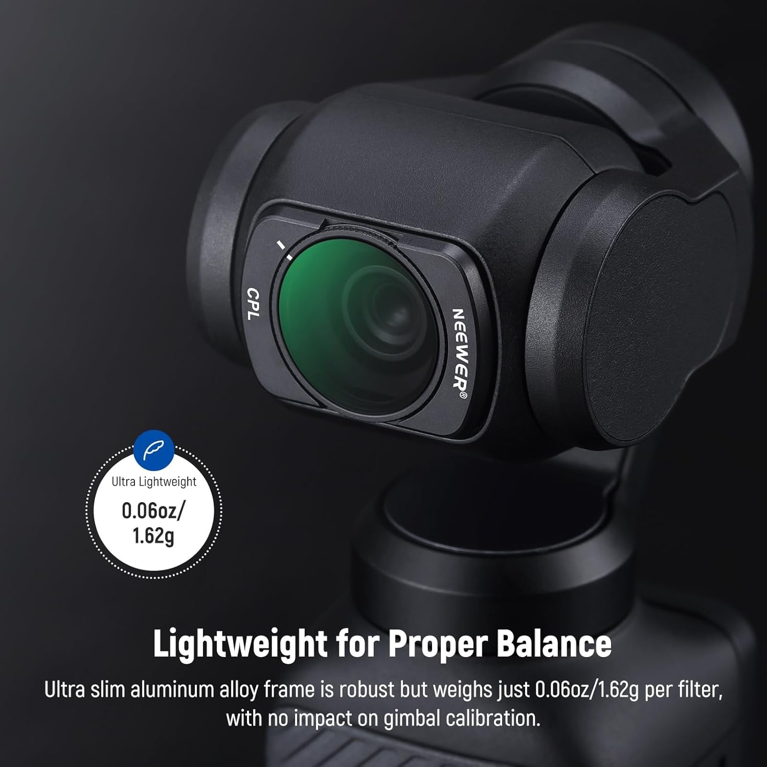 • 【Magnetic Fast & Secure Attach】 The magnetic design ensures rapid filter changes in just 1 second and provides a secure grip when using auto follow, shooting outdoor sports, or switching between horizontal and vertical shooting. Precision CNC machined lightweight aluminum frame (0.06oz/1.62g each) seamlessly fits the gimbal without any impact on gimbal calibration or storage