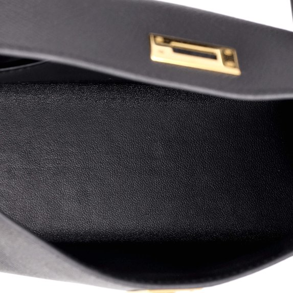 Pre-Owned Kelly Mini II Bag Noir Epsom with Gold Hardware 20 By Rebag